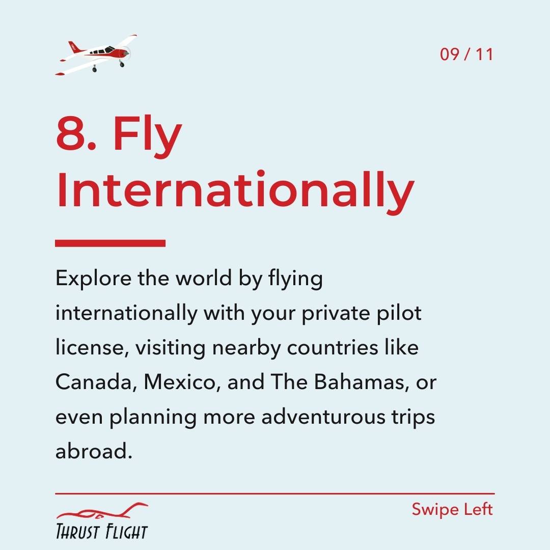 If you want to stick closer to home, check out some closer borders you can legally cross. Canada, Mexico, and The Bahamas all make outstanding aviation destinations. Flying internationally requires a little studying to ensure you understand your destination’s rules and regulations.